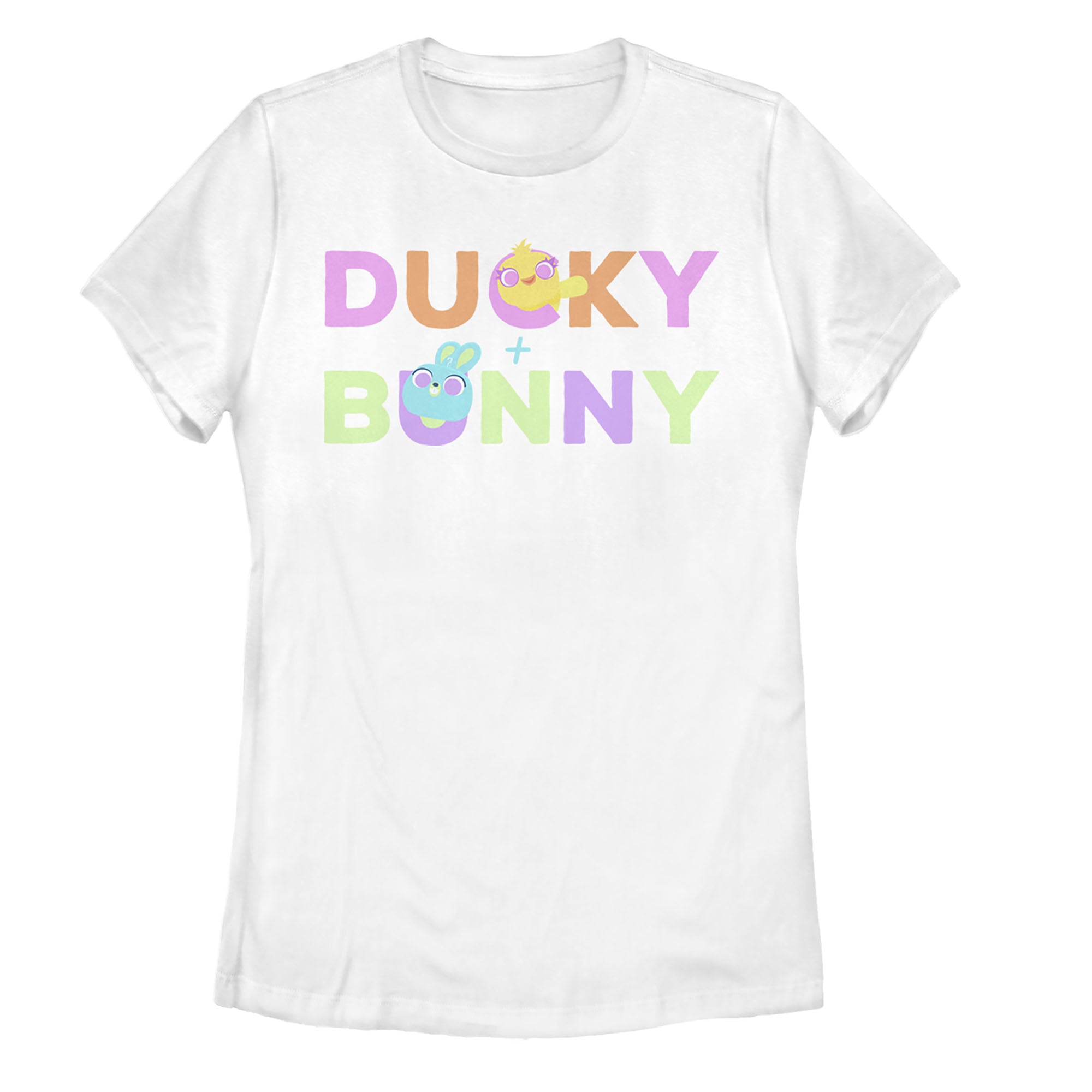 Women's Toy Story Ducky & Bunny Rainbow Text T-Shirt
